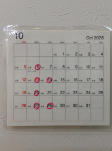 10月のお休みは
